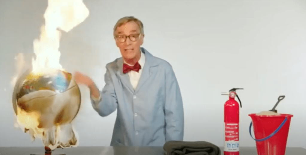 The minister who was speaking was talking about climate change, and she set out to impersonate Bill Nye, the Science Guy. If you’ve ever caught him on PBS, you know he’s always in a lab coat and a bow tie.