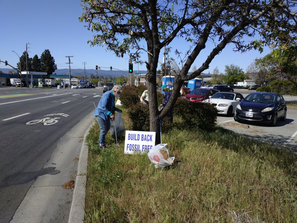 Climate activists at work along El Camino in Redwood City. We will be demonstrating each Saturday at noon to keep climate change top-of-mind for the public. If you’d like to join us, please get in touch!